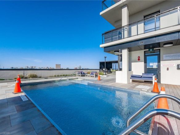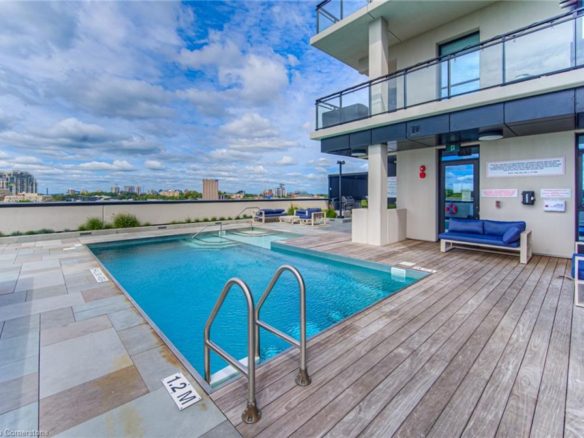 Welcome to Uptown Waterloo’s Circa 1877, a landmark residence that was once home to Ontario’s first and largest craft brewery, Brick Brewery, this stunning building preserves its heritage while offering contemporary elegance. Perched in the vibrant Bauer District and just minutes from Kitchener’s Innovation District, this 19-story architectural gem defines urban living. Unit 1706 at 181 King Street South offers 733 sq. ft. of thoughtfully designed living space, perfect for city professionals. The stylish one-bedroom features a generous closet and floor-to-ceiling windows that flood the space with natural light. The modern 4-piece bathroom is complete with a deep soaking tub and ceramic tiles. Enjoy the convenience of in-suite laundry and the versatility of an open-concept layout, ideal for entertaining. The kitchen boasts quartz countertops, a subway tile backsplash, and a functional island, seamlessly combining style and practicality. Living at Circa 1877 extends beyond your suite. The 6th-floor Sky Terrace offers a resort-style experience with a saltwater pool, cabanas, BBQs, and a fire table—perfect for hosting friends or unwinding. Additional building amenities include secured entry, a fitness and yoga room, a wet bar lounge, and 24/7 security. With an unbeatable walk score, you’re steps away from the LRT, Grand River Hospital, trendy shops, vibrant restaurants, and more. Don’t miss your chance to own a piece of history paired with modern luxury.