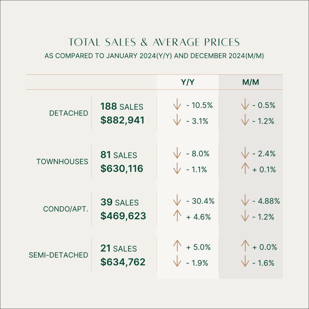The average sale price for all residential properties in January stood at $755,859, showing minimal movement with a slight 1.0 percent decrease from January 2024. Here’s how different property types performed: