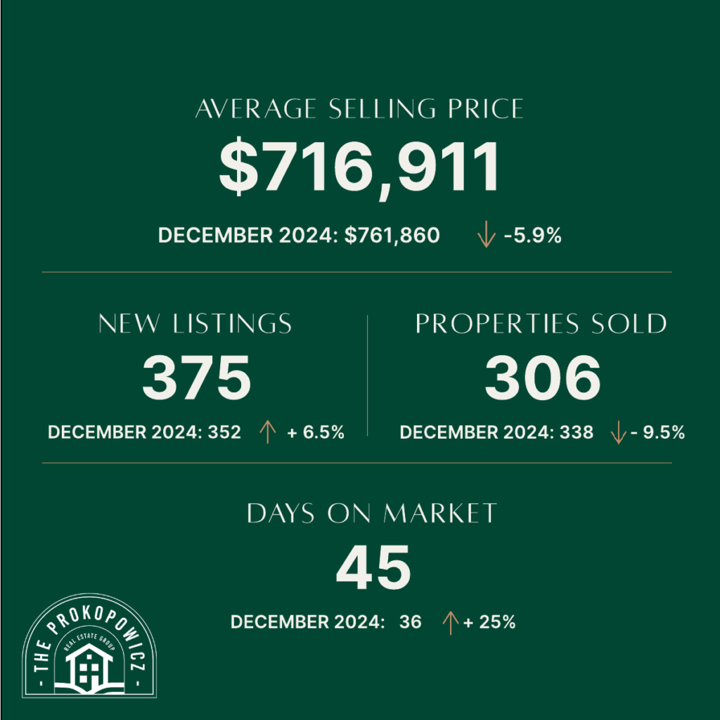 • Semi-detached: $601,535 (down 6.7% from Dec 2024, down 5.6% from Nov 2025)